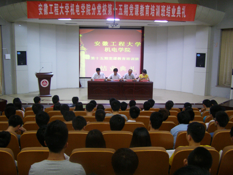 201465下午,机电学院分党校第十五期党课教育培训班结业典礼在校团委学术报告厅隆重举行。机电学院党委副书记郭全根、综合办公室主任韩兵、本期党课教育培训班班主任仵广海、吴辰君及136名培训班学员出席了结业典礼。典礼由韩兵主持。
