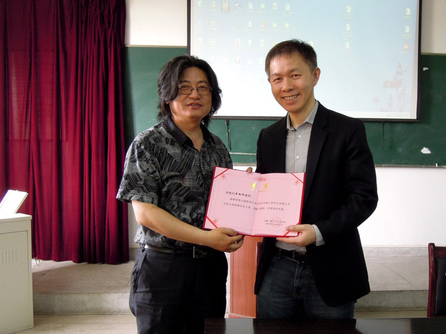 答辩会开始之前,学院举行了简短的聘任仪式,聘请辛向阳教授、程建新教授、江南大学设计学院副院长海归博士巩淼森副教授为我院客座教授。