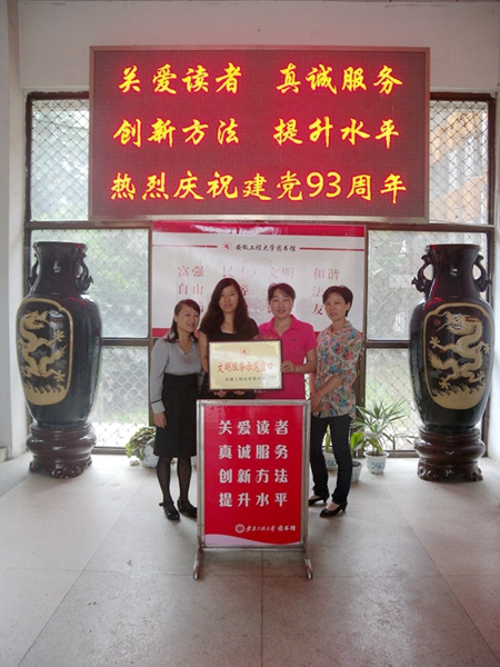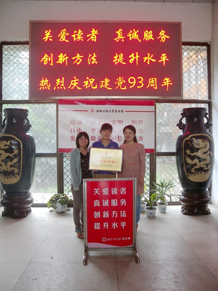 图书馆全体职工将继续秉承爱国、敬业、诚信、友善的价值理念,真正把读者装在心里,以饱满的精神状态做好文明服务各项工作,用出色的工作业绩向建党93周年献礼。
