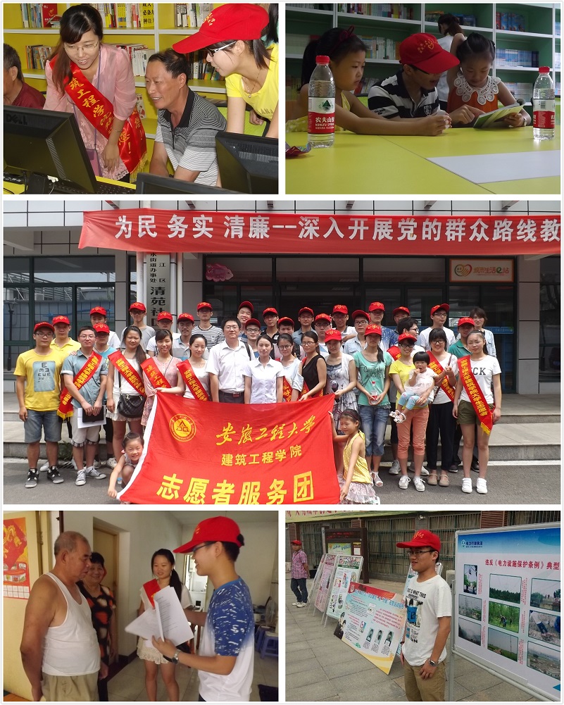 7月8日,建筑工程学院深入芜湖市鸠江区鸠兹社区、清苑社区开展“关爱老人,文明宣传”暑期社会实践活动。院团委副书记刘海涛带队参加。